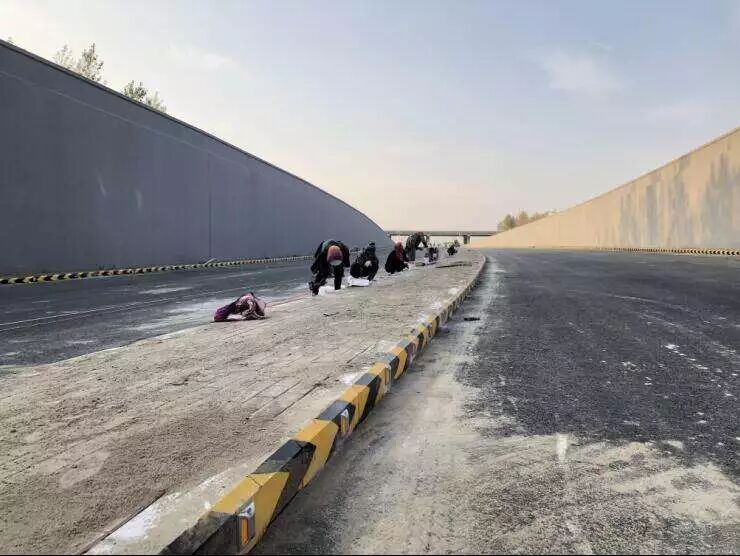 记者继续前行看到,道路两旁的行道树已经栽种完毕,人行步道板已竣工。在靠近利民开发区于金店处,环卫车辆正在洒水降尘,十几个清洁工人正在清理道路上的垃圾等。现场松北区城管局的一名工作人员告诉记者:“这条路等着划线呢,月末之前肯定能通车。”