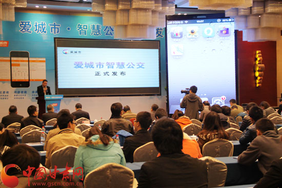 产品演示区一角 22日上午,中国电信甘肃分公司和兰州公交集团在兰州举行了爱城市•智慧公交发布会,宣告这一省内首创的公交智能化项目正式上线运行。 据中国电信甘肃分公司副总经理唐小文介绍,“爱城市”是智慧城市面向广大市民的一个掌上综合服务门户,着重为省内用户提供最全面、本地化、一站式的公共信息服务,是解决民生需求的重要组成,是未来公共交通发展的必须趋势,对环缓建日益严重的交通拥堵问题有着重大的意义,推动低碳城市建设,也标志着甘肃省智慧城市建设迈出一个新的步伐。 唐小文还提出,“爱城市•智慧公交”应用将向甘肃其他市州延伸,尽快实现全省覆盖。 发布会结束后,记者们乘坐130路公交车,体验了这款免费又简单的应用。(用户可通过“爱城市”官网m.189gs.com查询下载,也可通过91助手、应用汇、机锋、安智市场、苹果的AppStore等电子市场,搜索关键字“爱城市”下载彩虹标志的APP,还可直接用手机扫描二维码下载安装。) 据悉,“爱城市•智慧公交”是中国电信甘肃分公司和兰州公交集团联合打造的一款运用全球定位、无线通信、地理信息等综合技术,成功实现公交车辆运行信息化和可视化。可以让兰州市民通过智能手机随时查看全市90%以上的公交车实时到站信息,方便市民适时安排自己的乘车计划,解决市民等车难、堵车烦的困扰,充分享受城市信息化带来的智慧城市生活。