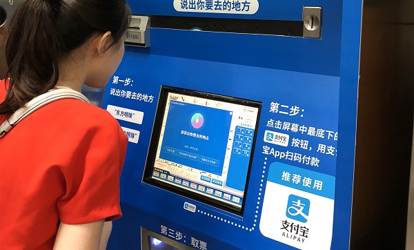 图说:语音引导购票 采访对象供图   世界人工智能大会正在上海举行,AI技术正在影响人们的生活。日前,轨道交通上海南站站点开始试点语音引导购票,乘客只要对着售票机说出自己的目的地,屏幕即可以根据AI等技术快速给出推荐的站点。例如,乘客对着屏幕说“我要去东方明珠”,那么屏幕会推荐出现“陆家嘴站”,然后乘客购票乘坐即可。        人工智能等新技术的应用,让乘客选站的时间从以往的十几秒缩短到1秒。上海南站试点运营的语音购票是基于阿里达摩院与支付宝的技术能力,解决了地铁乘客在嘈杂环境下的“选站”问题。 图说:2017年12月,语音购票等多项技术进入样机研制阶段   这也是国内首个能在公共环境下准远距离语音交互的产品。今年年底,语音引导购票有望覆盖上海南站、虹桥火车站、上海火车站、浦东机场、虹桥机场及吴淞口国际邮轮码头在内的主要出行枢纽。