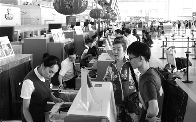 民航出行最高峰同样在30日和10月1日,其中热门航线南部方向是广州、深圳、三亚、海口、厦门,西南方向是云南、贵州、成都和重庆,西北方向是西安、新疆和西宁,东北方向是沈阳、长春和哈尔滨。禄口机场相关工作人员表示,国庆长假加上年休假,不少市民选择举家飞到欧洲、澳洲旅行。目前从机场直飞洛杉矶、法兰克福、悉尼、温哥华、赫尔辛基、圣彼得堡、米兰、莫斯科等8条远程洲际航线十分火爆。为提高客流安检道口过检效率,机场已增设旅客便民服务箱,配备一次性拉锁,旅行洗漱瓶,人丹、创可贴、风油精等物品。预计7天假期总客流量将突破60万人次。