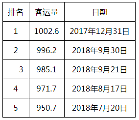 链接:地铁客流历史纪录前五位(单位:万人次)