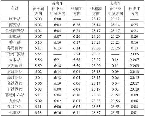 具体首末班车时刻表如下:
