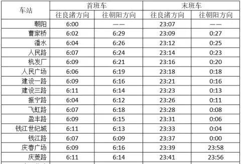 2号线首末班车时间(5月4日,延时一小时)