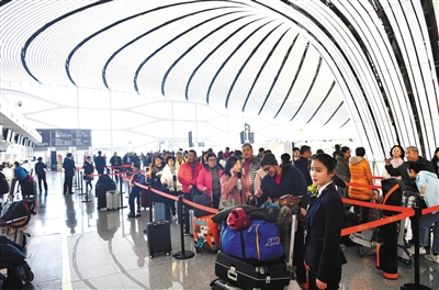 2020年春运期间,大兴机场预计将保障进出港旅客约190万人次,日均进出港航班约312架次,比平时增加15%。新京报记者 李木易 摄 取消二次安检 通行效率明显提升 昨天上午,记者在北京西站地区看到,原先位于地铁进站口外的安检通道已经被撤,只剩若干导流用的栅栏。在火车站外的地上、地下空间,则增设了一些安检口,旅客只需要从此经过安检后即可乘坐地铁或者铁路,都不再需要额外的安检。记者现场体验后发现,原先排长队的进站人流不见了,乘客通行效率明显提升。 为方便旅客进出站,北京西站的部分列车实行东西两侧候车室双向放行,可平均缩短上车旅客行走距离200米。今年,北京西站对北一层进站口及南进站口进行了改造,改造后增设安检仪4台,旅客进站流程更改为先安检后验证验票,可有效缩短旅客进站时间50%。同时,北京西站将南进站口东侧通道改设为出站口6,由18站台到达的旅客可由出站口5或6出站,长编列车和京雄城际旅客从出站口6出站换乘地铁、出租等交通工具,此举将节省旅客行走距离500-600米,出站时间缩短近三分之一。