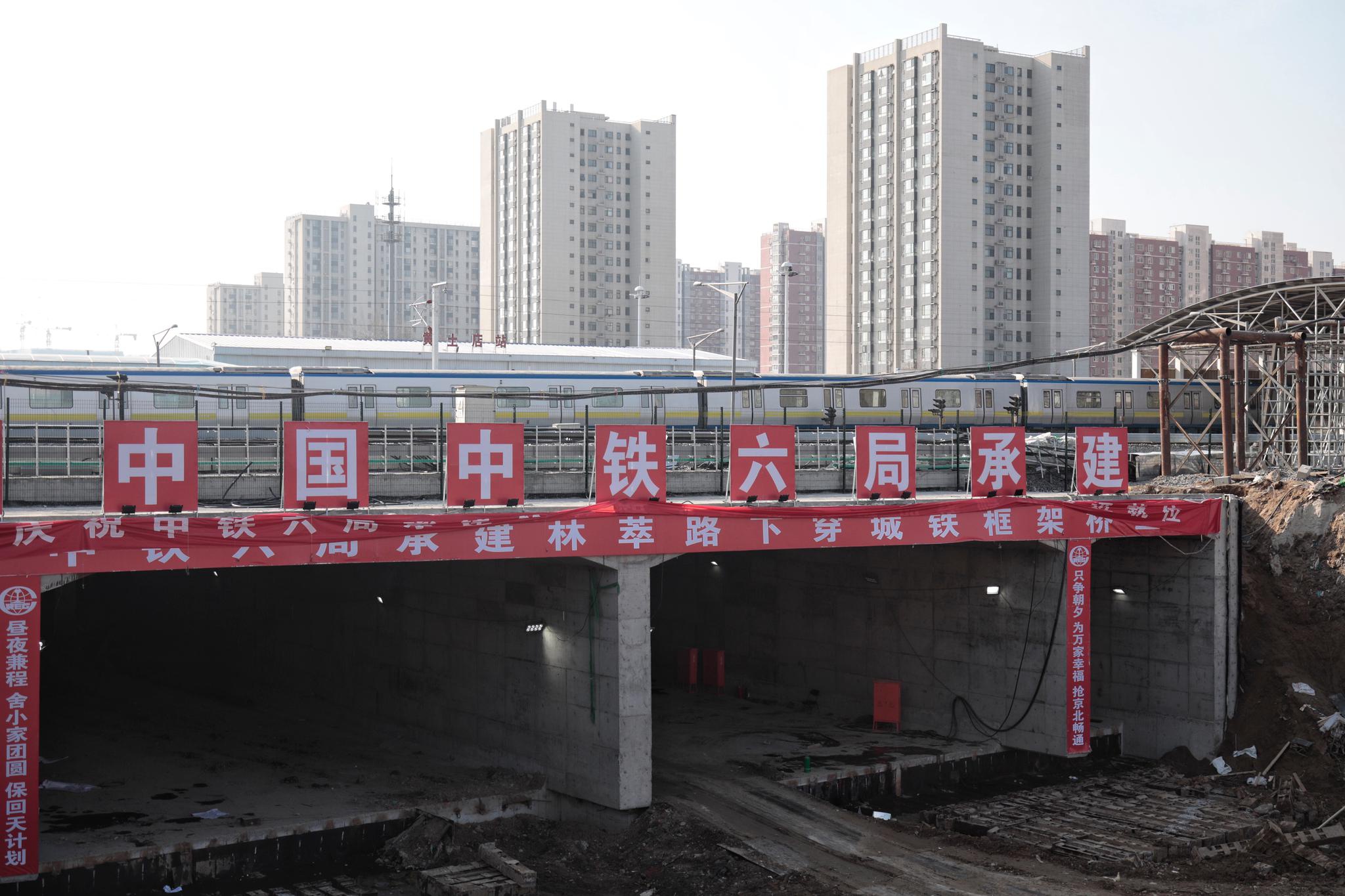 林萃路下穿地铁13号线框架桥顶进工程顺利完工。摄影/新京报记者 王嘉宁 作为一条城市主干道路,林萃路向北通达昌平,向南串联市主城区,但此前由于沿线受拆迁影响一直未能实现规划。从1月22日凌晨0点40分开始,为配合林萃路打通最后一公里的“断头路”,地铁13号线西段(西直门至霍营区间)开始了为期8天的停运施工改造,新建的林萃路从下方穿越地铁13号线。需要拆除地铁轨道,清除土方,将箱涵框架桥推进至线路下方后,再重新铺设一段新的地铁轨道。 上午10点半左右,地铁列车开始在新铺设的轨道上进行通车前测试工作。“我们是今早8点对这段新铺设的轨道进行确认供电,然后进行热滑测试,昨天晚上17点到20点,这里刚刚完成冷滑测试,随后进行了收尾作业。”北京地铁公司技术部副部长邹策解释道,所谓的冷滑测试,就是在轨道不带电情况下确认其机械性能是否完好,所测试使用的是内燃机车,而热滑测试则是在带电情况下测试线路的供电是否正常。