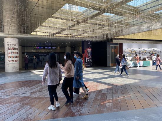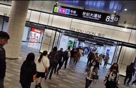 “张江男”陈喆就是一名IT工程师,喜欢打游戏与YD,他乘地铁上班9年,几乎每个工作日都要在世纪大道站换乘去张江的地铁。 坐地铁时,他会看电子书打发时间,如果太挤看不了书,就发发呆,想想工作安排,但这需要一个相对安静的环境,“(地铁上)讨厌吵闹的人”,碰到大声打电话,手机公放音乐的人,他会皱眉远离。 疫情严峻时,地铁真的安静了。 那时陈喆大部分时间宅在家中,一次出门办事,他坐地铁在世纪大道站中转,突然发现,整个换乘大厅几乎空无一人。 2月底,公司正式复工,陈喆乘地铁上下班,他看到只有餐馆是开门的,健身房和麻将馆都关着。他心里突然觉得挺没底,“不知道疫情何时能过去,希望赶紧能恢复日常生活。” 真正感到人多起来是在4月底。 一次下班后他去世纪大道吃饭,出站时震惊了,直通世纪汇商场的8号口前排了长长一队,“开始以为是商场搞活动,结果发现只是大家在排队有序进站。” 热闹恢复,就连爱静的陈喆也说,重新感受到了这个城市的活力。 活力也从世纪大道地铁站蔓延到了周边。 走出布满五五购物节广告的地铁站,一个人来人往的露天商场就展现在眼前,正上方一个超大屏幕正播放时尚广告,画外音说道,一切皆可选择。