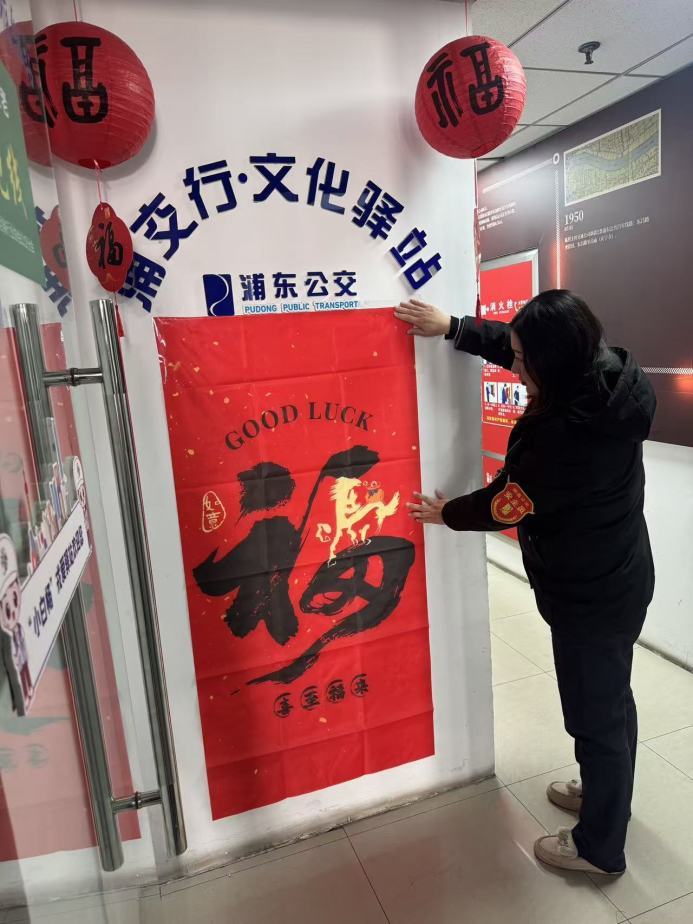 为迎接春节的到来,公交站点也装扮一新。金高公交各线队开展了“平安护岁迎马年 站点扮靓庆新春 ”主题活动,对公交站点、候车廊、职工休息室、办公区域等进行了精心布置,贴上对联、“福”字、窗花,挂上红红的灯笼,红红火火的装饰点缀在站点的各个角落,让过往市民及乘客共享浓浓的公交“年味”。